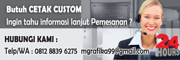 Silahkan kirimkan spesifikasi dan design cetakan yang ingin dicetak by email : mgrafika99@gmail.com